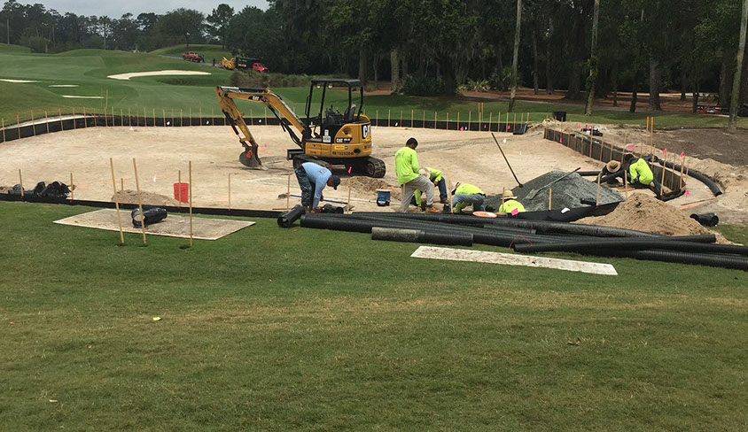 After the 2016 PLAYERS the greens were cored out. New drain and sub-air lines were installed along with a new 4”gravel layer and USGA greens mix. After the greens were cored out, rebuilt to USGA specifications, and received their final contouring and grading they were grown in with TifEagle sprigs.